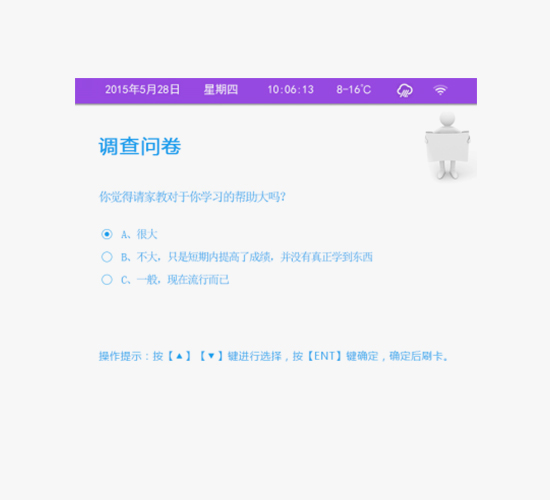 為真實、全面掌握學生在學校的生活、學習狀態及反饋,很多學校通過調查問卷形式了解學生對某一事物的滿意度、真實想法及個人意向等,但傳統的調查問卷形式無法準確驗證調查人員有效的身份,統計調查結果的工作更為復雜繁瑣,以至于無法得到真正有效的、客觀的調查結果。